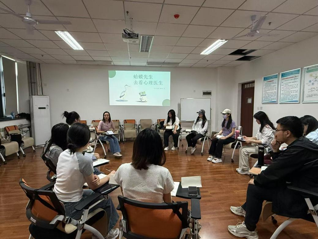 活动伊始,全体成员依次围绕专业背景、过往经历及参与动机等基本情况展开自我介绍,有效拉近了彼此距离。随后,杨婉晨对推荐书目《蛤蟆先生去看心理医生》进行深度解读,书中以蛤蟆先生为主角,讲述其如何在朋友关怀下主动寻求心理咨询,最终重拾自信与生活希望。紧接着,她对活动考勤、内容安排等作了详细说明,并鼓励大家在相互支持下深入探讨阅读感悟,共同开启心灵成长之旅。随后,成员们发表了本次沙龙活动的感悟。A同学谈到,第一次沙龙活动感觉氛围特别好,大家都可以畅所欲言,说说自己的故事与观点,很轻松也很愉快,希望下次继续与大家见面讨论心理知识。人是社会中的人,如何建立良好的人际关系始终是生命中的主课题,希望在团体分享中能学到更多,结束后能收获不一样的自己。B同学分享到,当我们说到倾听,说到看见,说到理解的时候,我无比庆幸推开了502的门。很感谢杨老师给我们提供了一个打开自己、拥抱自己、拥抱他人的机会。我始终相信,向内求,能无限扩宽生命的厚度。很期待接下来的课程,同时很高兴也很感激与大家的相遇。C同学认为,在第一次团体沙龙中,大家都毫无防备,畅所欲言的分享自己的观点,自己的故事,通过分享交流,我们找到了拥有相同经历、感受的伙伴,也从不同的处事中看到了与自己思维不同的另一面,更在分享的过程中自己内心有了疗愈。希望通过分享交流,我们都能获得自我调试情绪的能力,成为更好的自己。D同学补充到,在快节奏、格式化的生活圈里能寻得这样一间小屋,让我们彼此放下防备,敞开心扉,对话自己,倾听他人,甚是轻松愉悦,期待共阅读、共分享、共觅知音。