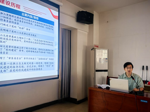 李旺盛以《坚持问题导向 深入学习贯彻中央八项规定精神》为题,从党章切入梳理了百年来中国共产党作风建设的历程,阐释了中央八项规定的由来及中央八项规定精神的内涵,最后号召党员同志要警惕“四风”问题的新变种,处理好个人党性、人性、心性的关系,把中央八项规定精神融入血脉。