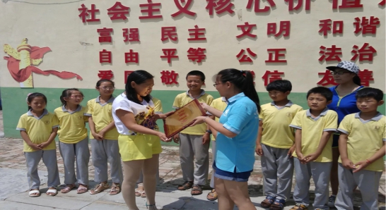 天刚放晴,地面还能清晰的看到昨夜大雨的痕迹,孝义镇中心小学的小朋友们早早来到队员们的住宿房间外,尽管依旧嬉戏,但每一位小朋友都不自觉的向房间方向看去,因为他们知道,相处不久的大哥哥大姐姐们要和他们说再见了。队长代表整个队伍,像向孝义镇中心小学的代表老师表达了最真挚的感谢:“感谢孝义镇中心小学校长及老师在这几日对我们调研工作的大力支持,没有你们,我们的工作必然无法如此顺利的完成。”随后,双方进行了赠牌仪式,小小的感谢牌却凝聚着调研团队每位成员的感谢之情,也见证着这几日的调研时光。