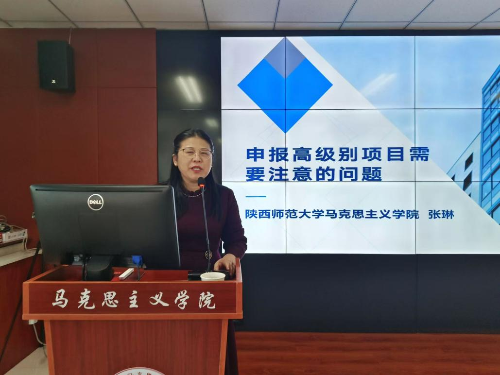 11月29日下午,陕西师范大学马克思主义学院副院长张琳教授应邀做客我校“名家讲坛”,为我院师生作了题为《申报高级别项目需要注意的几个问题》的专题讲座。讲座由我院副院长袁成主持。